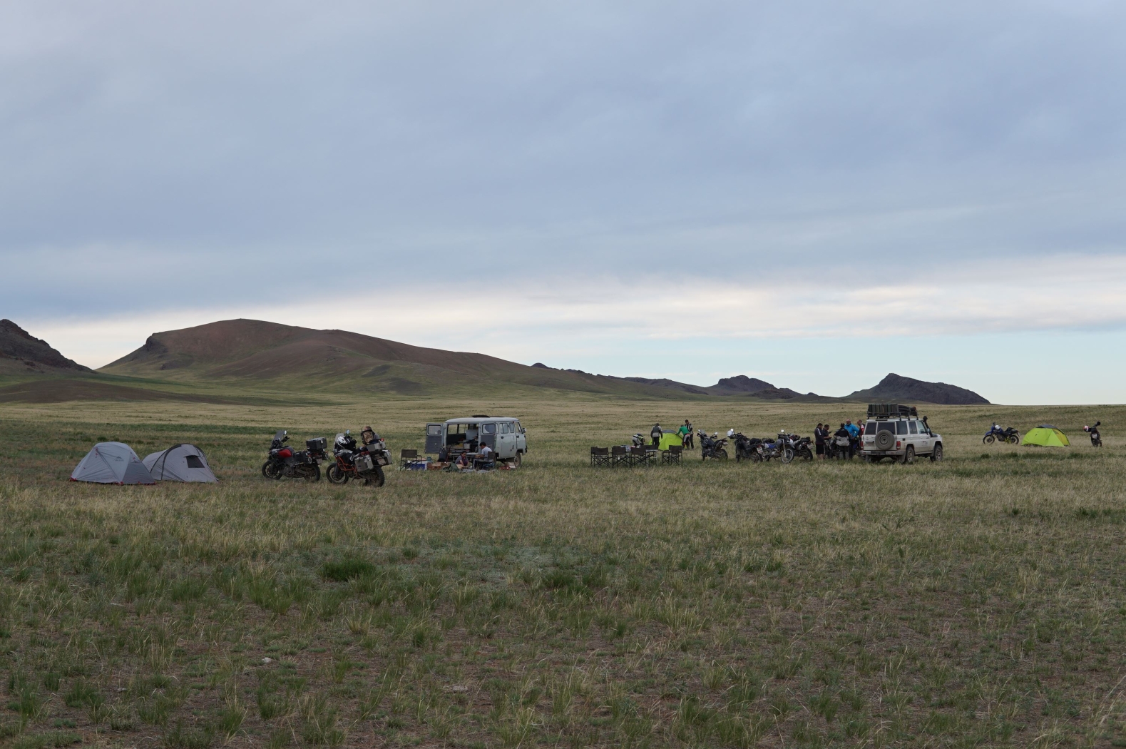 La nici 3-4 kilometri de la ieșirea din sat vedem circul.. motociclete parcate, oameni de-a valma, vreo 3 jeepuri, haos.. Adi oprește lângă un motociclist, vorbește ceva cu el si cotește brusc la dreapta, de-a dreptul pe câmp in direcția opusa grupului. Eu nu prea înțeleg nimic din asta, aveam impresia ca urma sa campam pe partea stânga a drumului unde era oprita toata lumea.