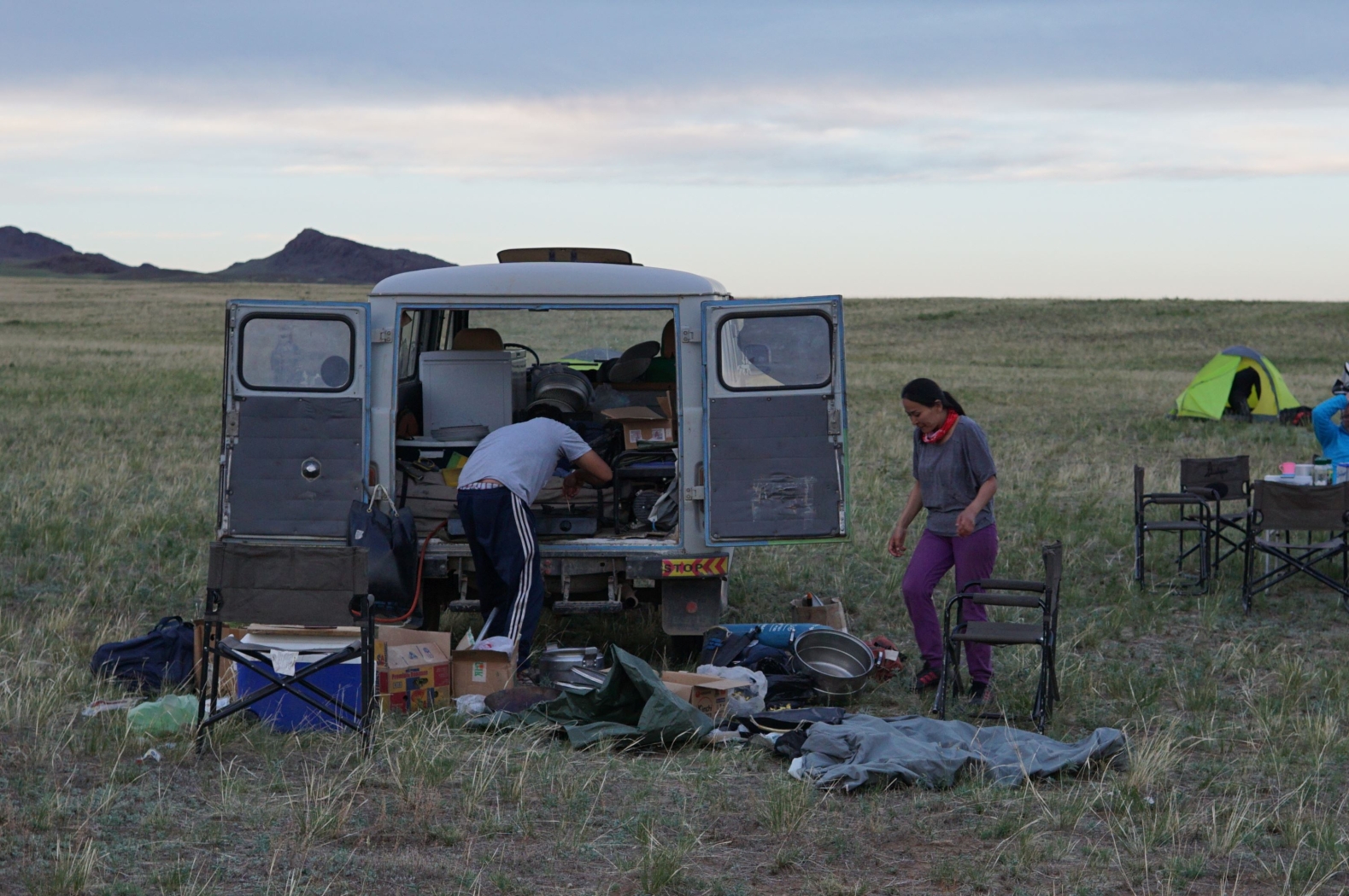 Cum mergem noi așa pe câmp vreo 50-100 de metri vad in fata o dubita oprita din care un bărbat si o femeie descărcau o butelie de aragaz. Ați citit bine, o butelie de aragaz in mijlocul câmpului, in Mongolia pe dreapta.