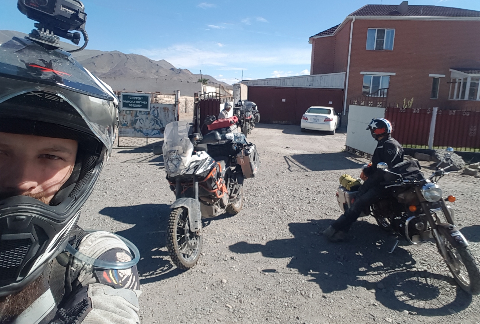 In fine, plecam pe rand din vama, pe masura ce am terminat cu formalitatile si ne regrupam la 1 kilometru mai departe, langa o carciuma. Ajunsi acolo decidem sa ne separam de Leo. Era deja miezul zilei, planul nostru era sa plecam catre Altai Motor house, un guest house pentru motociclisti. aflat la vreo 500 de kilometri departare. Leo nu avea cum sa parcurga distanta asta dintr-o bucata, viteza sa de croaziera fiind undeva la 80 km/h.