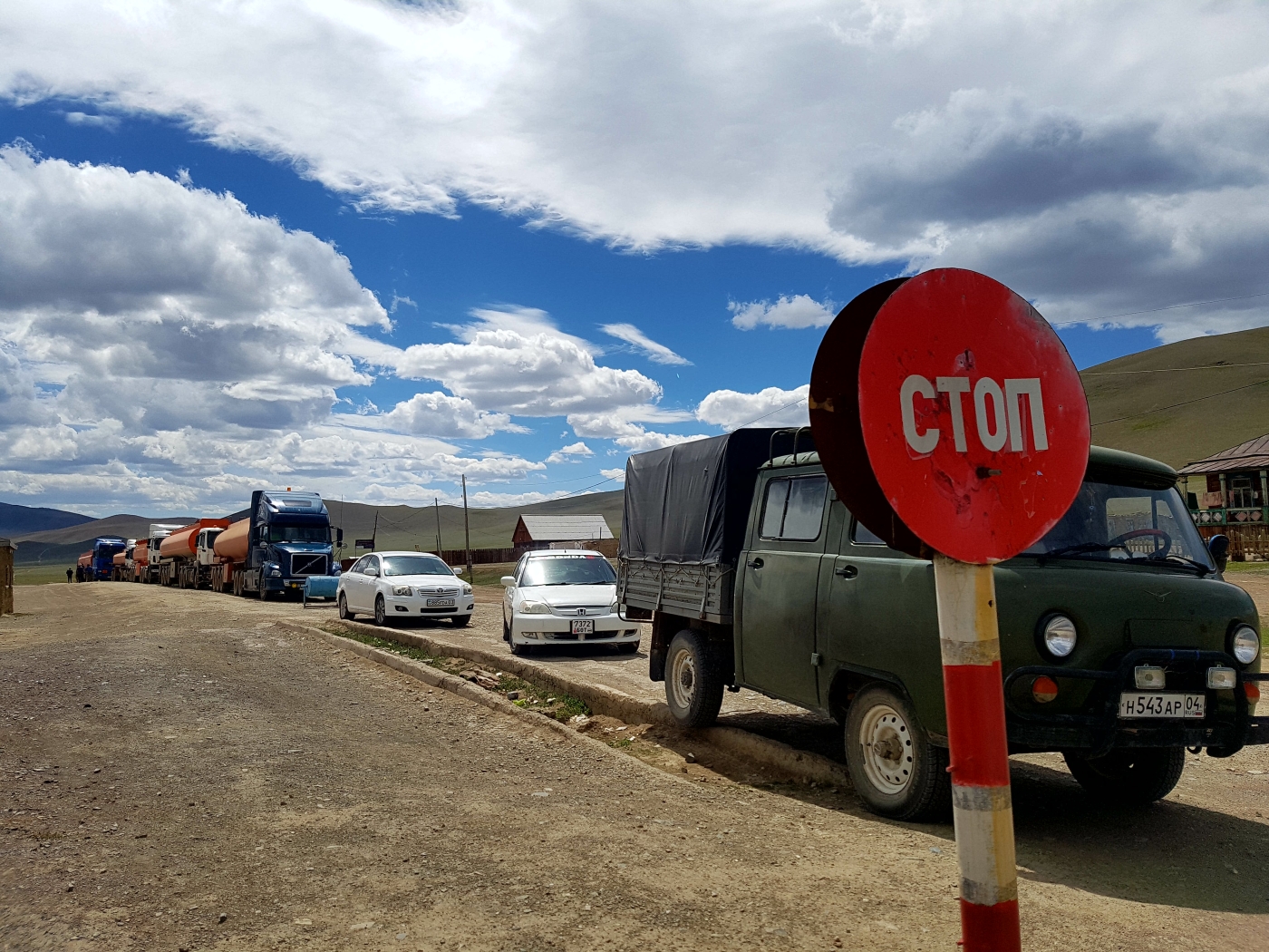 Plecam de-aici din vama si o luam spre vama ruseasca aflata cam la 20 de kilometri departare. Ajunsi aici, ne face un gardian semn sa venim in fata. Ne conformam bucurosi, ocolom sirurile de masini si ajungem langa poarta. Oamenii de la coada nu pareau deranjati ca bagatorii de seama mongolezi, chiar ne zambeau si ne faceau loc cat puteau.