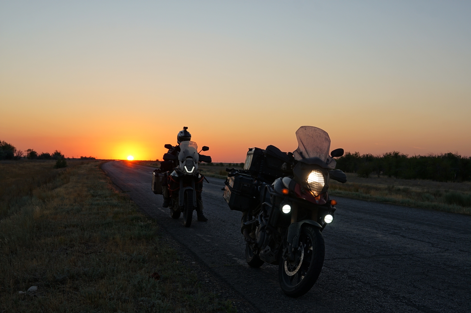 Drumul a continuat, am prins un apus senzational si un foc de vegetatie destul de serios. Am ajuns la Inderbor dupa lasarea intunericului. Aici am bajbait nitel pana am gasit cazarea, am si trantit motorul la un moment dat cand am dat sa intorc, eram super mega obosit dupa nici mai mult nici mai putin de 1428.8 km – cea mai mare distanta parcursa intr-o singura zi.