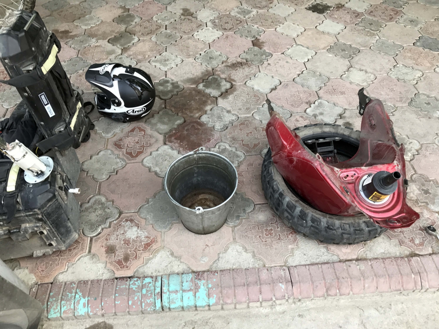 Pauza a fost, relaxare nu prea. Dupa ce luam micul dejun inclus in pretul cazarii facem planul de bataie. Adi trebuia sa ajunga cu motocicleta la un service aflat la vreo doua strazi departare sa vada ce-i cu pompa de benzina. Va reamintesc din episodul trecut ca dupa ce am pus benzina din Taijukistan din niste butoaie dubioase (nu aveam de ales oricum), Suzuki-ul lui Adi a inceput sa se inece si sa nu mai mearga rotund.