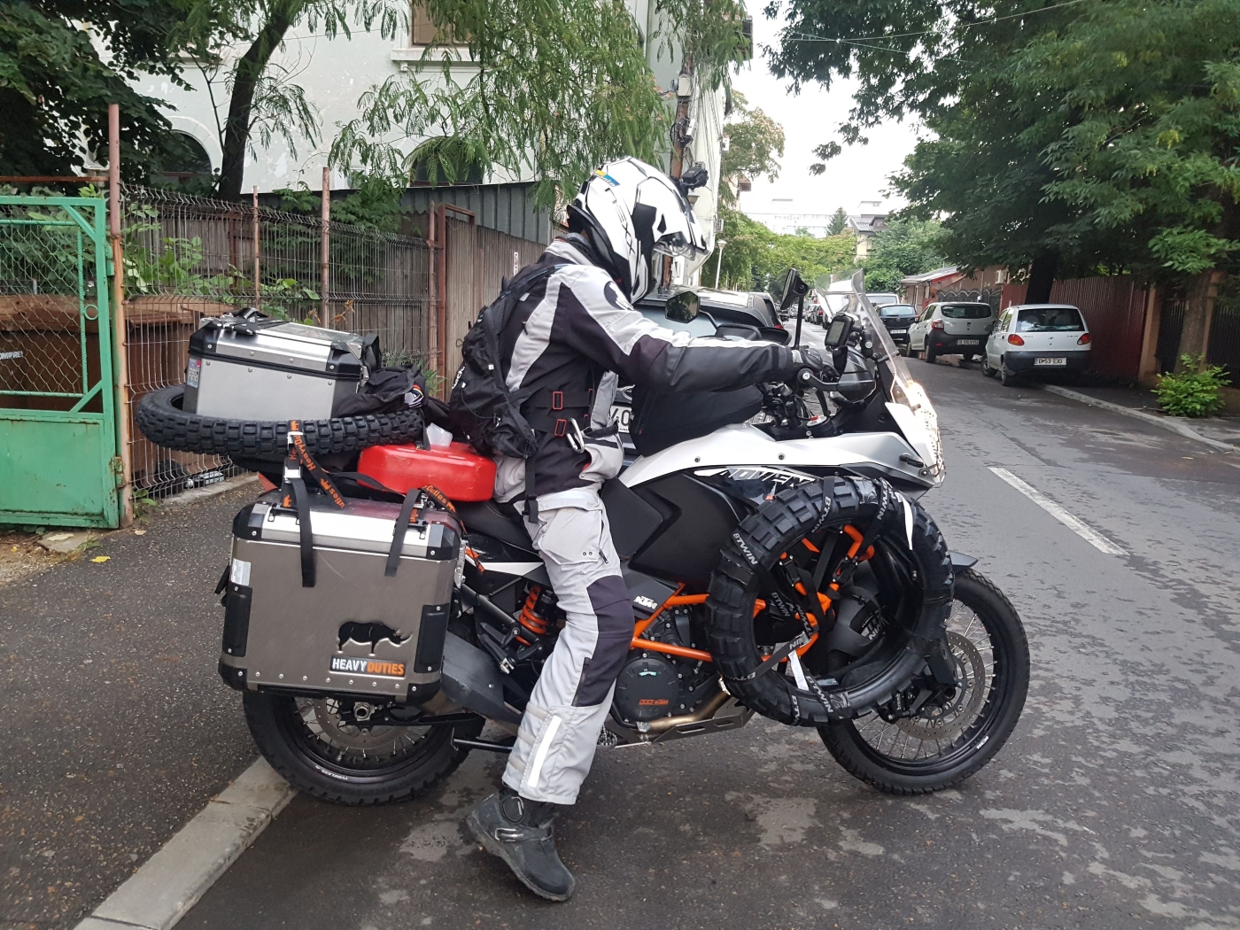 Ziua de dinaintea plecarii, T-1 cum ar veni. Totul este impachetat, cauciucurile de rezerva si cutiile asteapta cuminti in sufragerie incarcate cu tot ce trebuie. Le iau pe rand si le duc la motocicleta, maine dimineata cand o iau din loc vreau sa nu mai am nimic de carat 🙂
