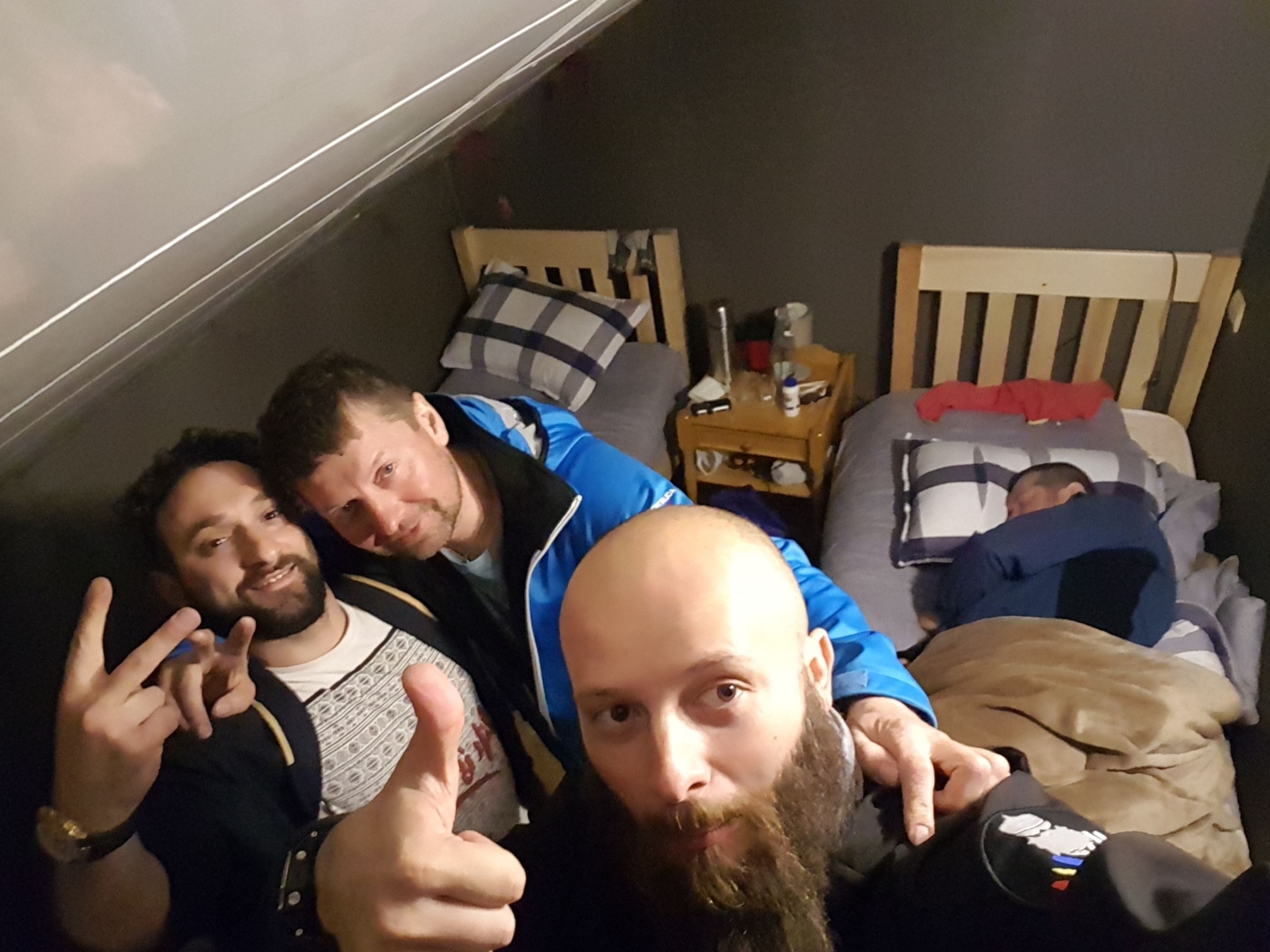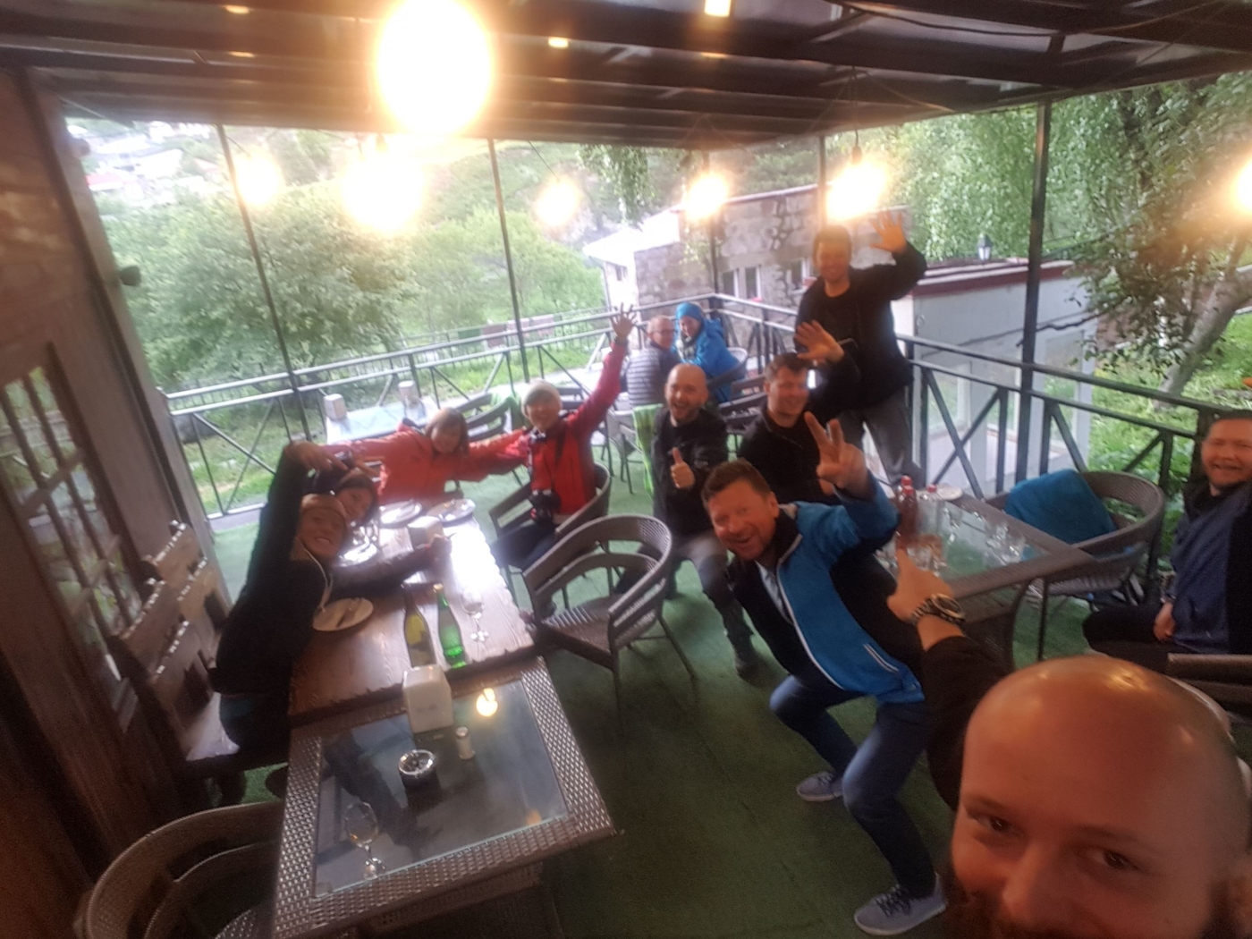 Dupa ce s-au dus si rusii la somn ne imprietenim cu niste georgieni de la o masa dinauntru.