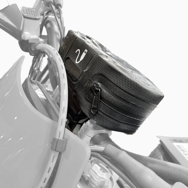 Pentru că foarte mulți călători pe motocicletă ne-au întrebat în trecut dacă avem o geantă mică, perfectă pentru ghidon, ne-am pus pe treabă și am conceput și realizat un astfel de produs special. Pentru că fiecare dintre noi își dorește să aibă la îndemână micile accesorii esențiale într-o călătorie. Conceput în două variante S și L, geanta pentru ghidon este perfectă pentru a-ți transporta telefonul, cheile, portofelul, suportul pentru lentile de contact etc.Cu o clemă inovatoare de fixare, se potrivește aproape oricărui ghidon (22, 28 și 32 mm diametru) și este bine înșurubat de acesta – astfel geanta pentru ghidon este, de asemenea, asigurată automat împotriva furtului și este atașată ferm de motocicletă pentru fiecare utilizare. Smartphone-ul (până la o dimensiune de 15 x 7 x 0,7 cm) poate fi pus în geanta de ghidon și astfel poate fi folosit ca dispozitiv de navigație. Pentru telefoane mai mari e nevoie de geanta pentru ghidon – L pe care o găsiți aici. Ca toate produsele noastre, geanta pentru ghidon este impermeabilă și vă protejează 100% bunurile de ploaie, praf și nisip.