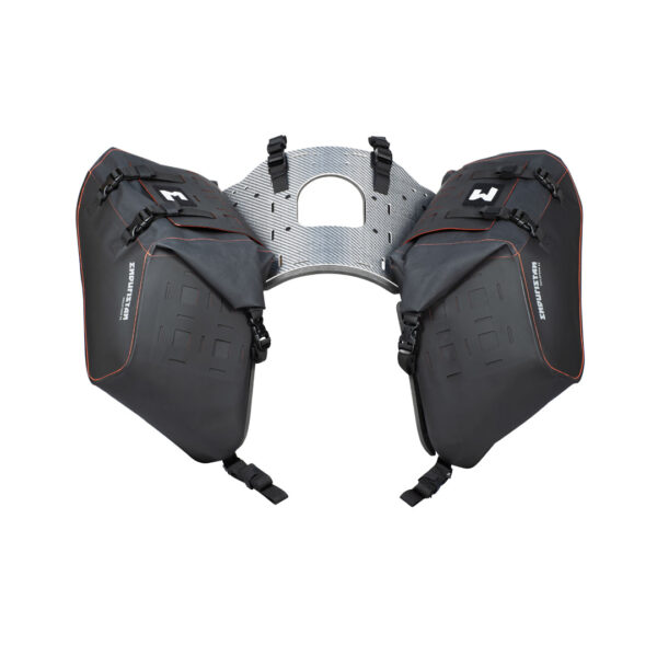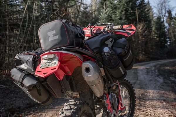 Hailstorm nu este doar încă un set de genți laterale „fără rack”. Este un sistem complet, gândit pentru riderii care chiar ies la drum cu bagaj serios, merg pe asfalt, pe macadam și pe trasee grele, dar nu vor să încarce motocicleta cu un sistem rigid și greu.
