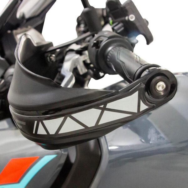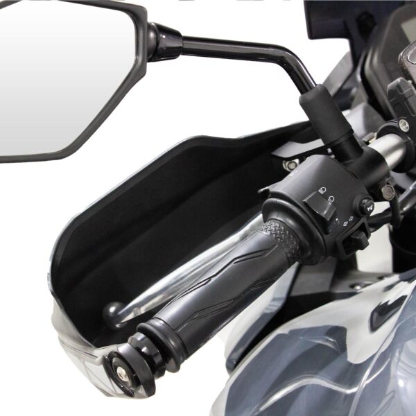 Handguard-ul GP Kompozit protejează mâinile de impacturi și vânt, completând stilul motocicletei; realizat din plastic rezistent, se montează rapid, fără modificări.