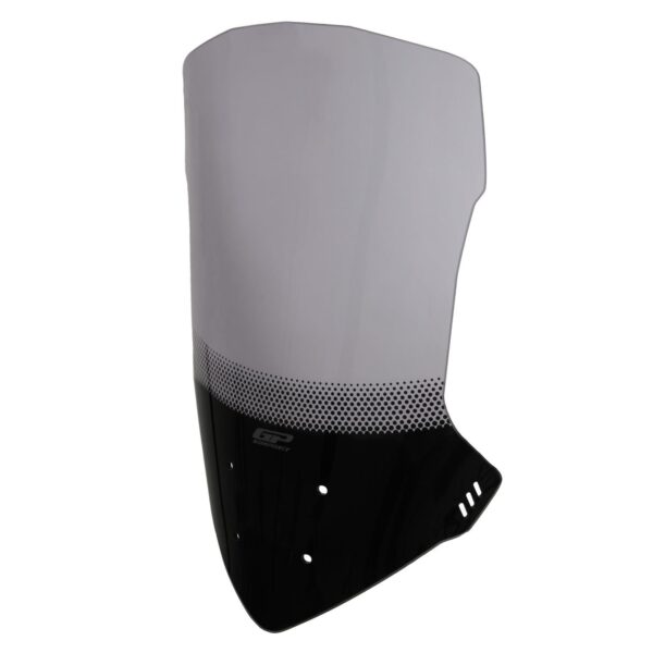 Parbrizul Fumuriu GP Kompozit protejează eficient împotriva vântului și particulelor în zbor, cu efect de reducere a luminii tip ochelari de soare; fabricat din acrilic durabil, se montează rapid cu șuruburile incluse.