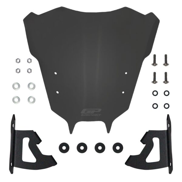 Parbrizul fumuriu GP Kompozit oferă protecție aerodinamică și vizibilitate optimă, cu efect optic tip ochelari de soare; realizat din acrilic rezistent la zgârieturi și UV, se instalează ușor cu suportul inclus.