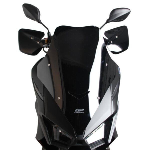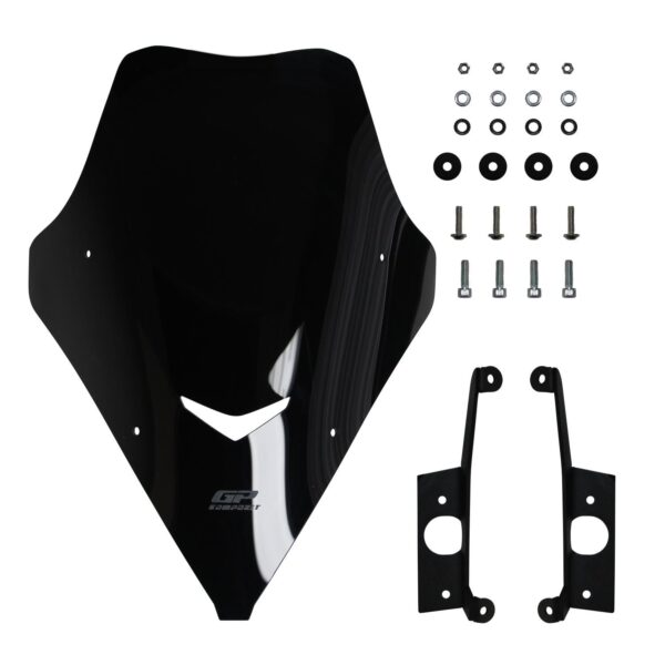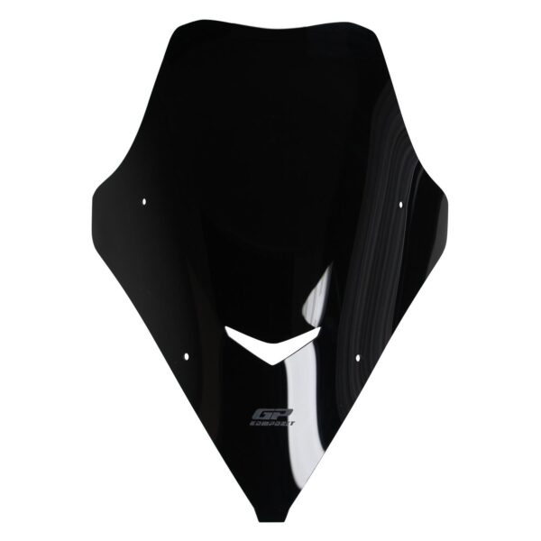 Parbrizul negru GP Kompozit oferă protecție eficientă împotriva curenților de aer și a obiectelor externe, blocând totodată vizibilitatea din spate pentru un plus de confort; acrilic flexibil, rezistent la zgârieturi, cu montaj complet inclus.