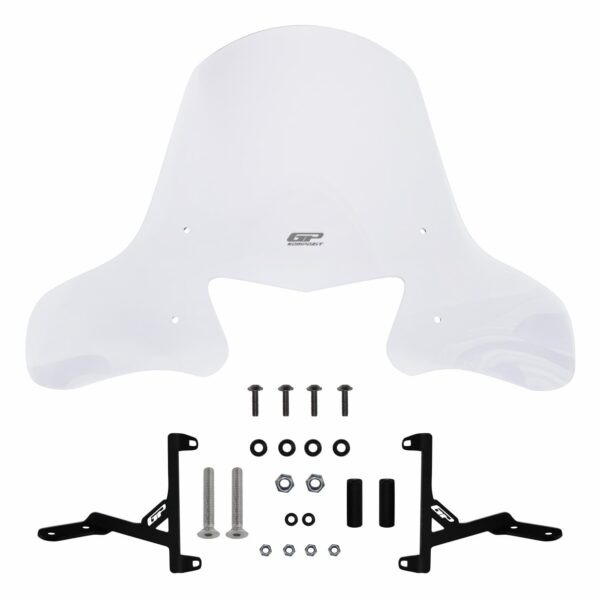 Parbrizul transparent GP Kompozit îmbunătățește vizibilitatea și confortul în timpul mersului, oferind protecție eficientă împotriva vântului; fabricat din acrilic durabil, flexibil și rezistent la zgârieturi, cu montaj simplu și suport inclus.