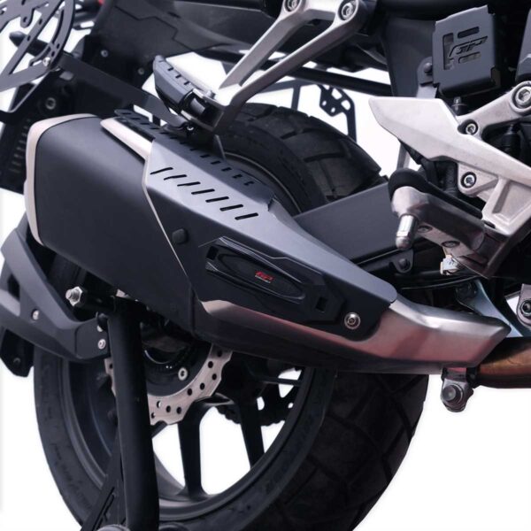 Protecție evacuare neagră pentru Honda NX500 2025, previne arsurile și zgârieturile. Material: Oțel vopsit electrostatic.
