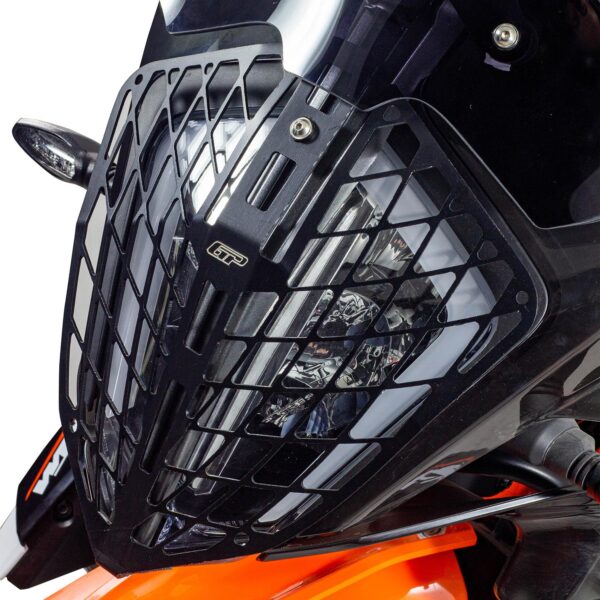 Protecția de far GP Kompozit blochează eficient pietrele și obiectele zburătoare, păstrând designul curat al motocicletei; fabricată din aluminiu CNC, se instalează fără modificări.