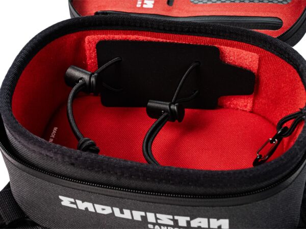 Fixare solidăGențile de rezervor Sandstorm 5 se fixează în siguranță pe motocicleta ta. Ele se atașează în față cu o curea care rămâne pe motocicletă chiar și atunci când geanta de rezervor este îndepărtată. Partea din spate este securizată cu curele ce încorporează ROKstraps, atașate de cadrul motocicletei cu catarame, permițând ajustarea lungimii pentru a se potrivi perfect motocicletei tale.Pad de atașare inovativUn pad de atașare inovativ pe geanta de rezervor îți permite să fixezi un buzunar pentru hărți sau Organizer Patch Drawstring inclus. Mai multe accesorii pentru acest pad de atașare sunt dezvoltate continuu.Volum de 1 litru pentru esențialeSandstorm 5.01 are un volum de un litru, așa cum indică și numele său. Acesta oferă suficient spațiu pentru a transporta cheile, smartphone-ul, portofelul și o gustare mică.Organizator integrat în capacCapacul are un organizator integrat, permițându-ți să depozitezi și să păstrezi în siguranță un pix, obiecte mici și un card de credit sau bancar, mereu la îndemână.Fixare antiderapantăObiectele mai mari, cum ar fi un Leatherman, o doză de băutură, gustări, o baterie externă și obiecte similare pot fi securizate în interiorul genții de rezervor folosind un șnur elastic – „Organizer Patch Drawstring” de pe peretele lateral.Încărcare în timpul deplasăriiDacă dorești să-ți încarci smartphone-ul, camera, bateria externă sau alte dispozitive în timpul deplasării, poți face acest lucru oricând datorită trecerii de cablu practice.Cheile mereu la îndemânăO carabină Enduristan este integrată în partea de sus a compartimentului principal, permițându-ți să-ți atașezi cheile și să le găsești rapid ori de câte ori ai nevoie.Vizibilitate îmbunătățităToate imprimeurile de pe gențile de rezervor Sandstorm 5 sunt reflectorizante, oferind o siguranță și vizibilitate sporită în trafic.Materiale de înaltă calitateAngajamentul nostru față de calitate este evident în materialele atent alese care fac ca fiecare produs să fie un companion durabil și de încredere:- Geanta de rezervor este complet fără PVC- Material principal: 600D TPU negru și roșu- Mini carabină (suport pentru chei): Aluminiu de grad aeronautic, rezistență la tracțiune: 265 NM- Hypalon 420D: Încorporat în zone cheie cum ar fi buclele de atașare și fermoare- Căptușeala de pe fund: Spumă EVA de 3.5mm turnată cu logo- Pad de atașare: Realizat din Hypalon 840D cu o interfață pentru accesorii- Fermoar impermeabil îmbunătățit cu sigiliu la poziția finală cu Rating IPX-55- Bucle de atașare realizate din Hypalon Cu aceste materiale de înaltă calitate, stabilim standarde de excelență și funcționalitate, asigurând că produsul tău rezistă celor mai solicitante condiții.