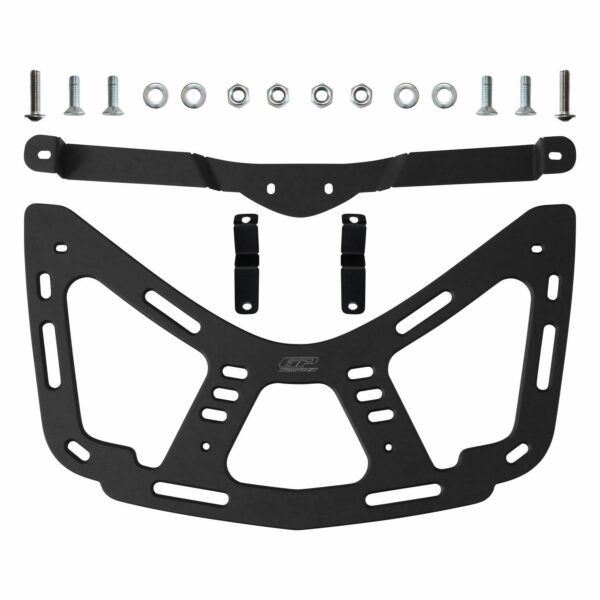 Suportul portbagaj GP Kompozit extinde capacitatea de transport, fiind fabricat din aluminiu CNC anodizat; necesită doar două găuri în topcase, capace incluse.